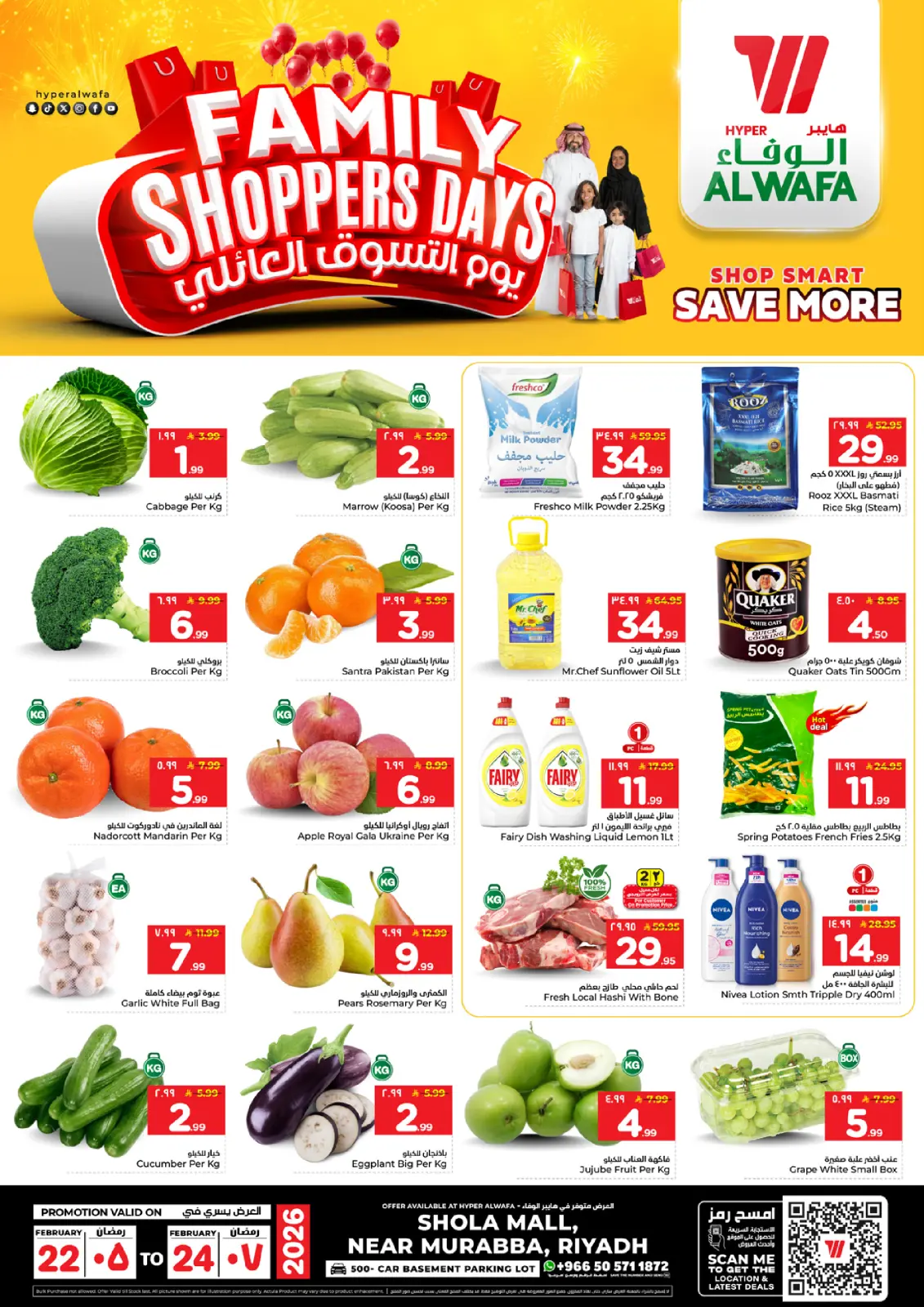 اكتشف أحدث عروض الوفاء هايبر ماركت في السعودية اليوم وتصفح كاتالوج عروض يوم التسوق العائلى واستفد من أفضل الأسعار حتى 24 فبراير 2026.