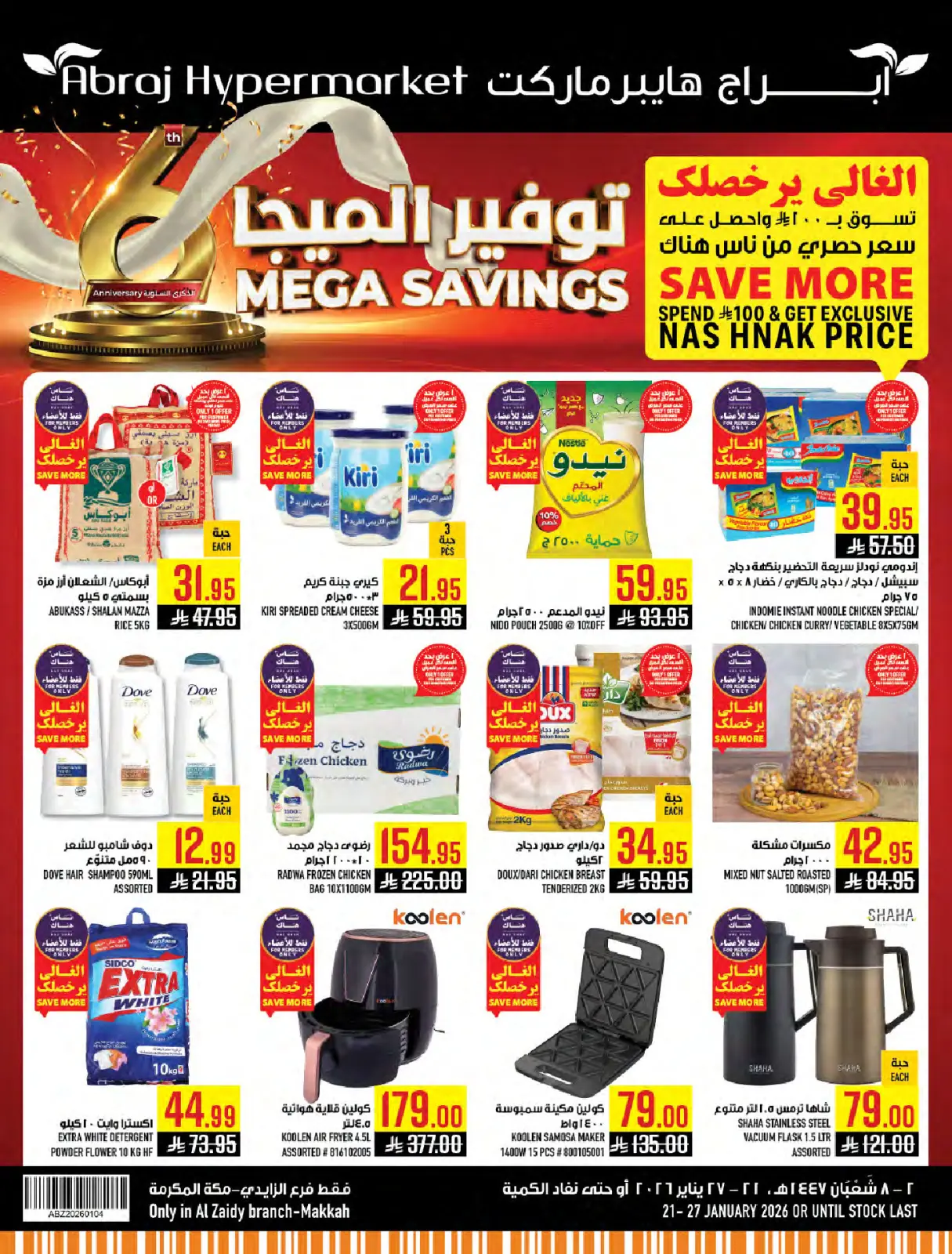 اكتشف أحدث عروض أبراج هايبر ماركت في السعودية اليوم بفروع مكة المكرمة وتصفح كاتالوج عروض الميجا واستفد من أفضل الأسعار حتى 27 يناير 2026.