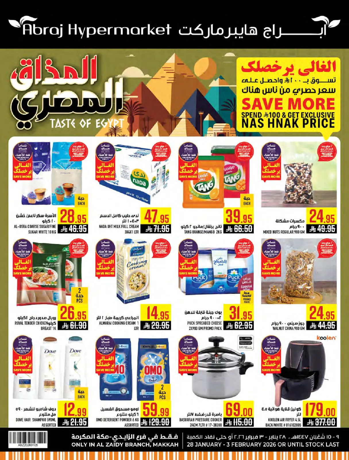 عروض أبراج هايبر ماركت مكة المكرمة من 28 يناير حتى 3 فبراير 2026 عروض المذاق المصرى