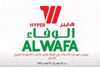 الوفاء هايبر ماركت السعودية بفروع الدمام تعلن عن تخفيضات جديدة بعنوان « عروض مهرجان الأسماك » المتوفرة حتي يوم 29 نوفمبر 2025, عروض جديدة وأسعار فقط في السعودية.