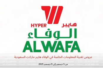 الوفاء هايبر ماركت السعودية تعلن عن تخفيضات جديدة بعنوان « عروض تقنية المعلومات الخاصة » المتوفرة حتي يوم 9 ديسمبر 2025, عروض جديدة وأسعار فقط في السعودية.