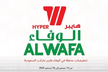 الوفاء هايبر ماركت السعودية تعلن عن تخفيضات جديدة بعنوان « تخفيضات مذهلة » المتوفرة حتي يوم 16 ديسمبر 2025, عروض جديدة وأسعار فقط في السعودية.