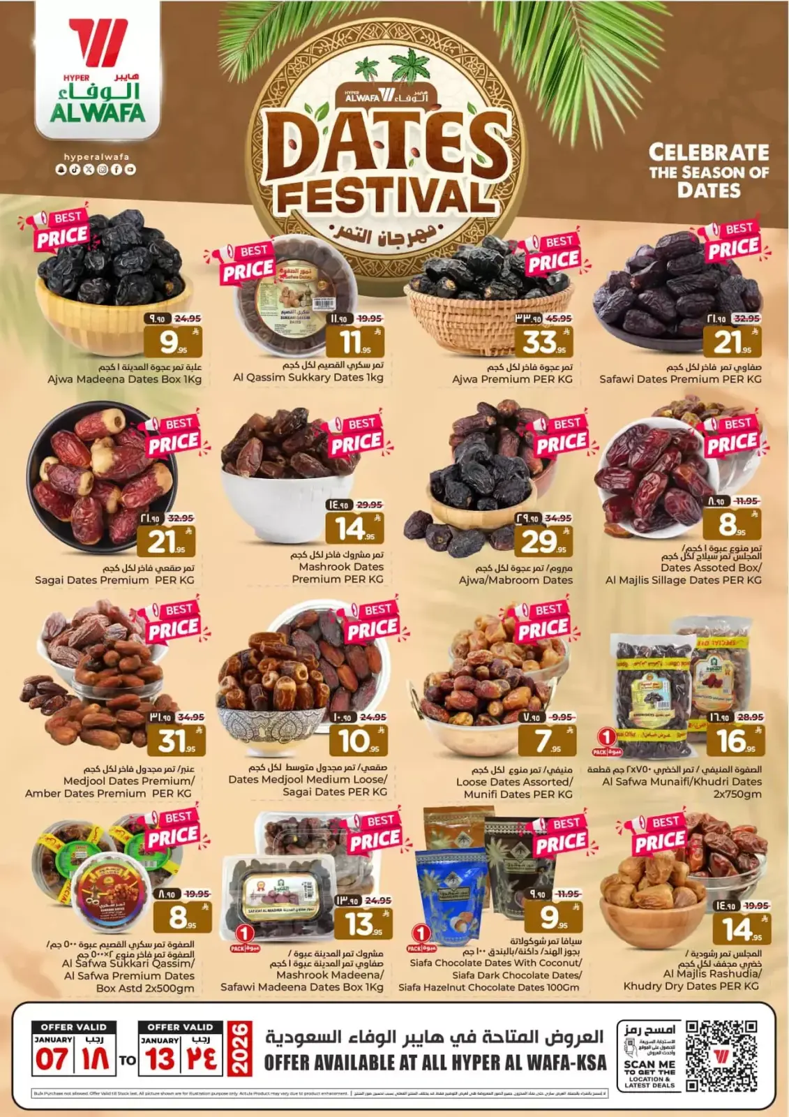 تنويه: صور وأسعار عروض مهرجان التمور في الوفاء هايبر ماركت السعودية المعروضة في هذا الكاتالوج لأغراض توضيحية فقط، وتخضع للتوفر في الفروع خلال فترة العرض.