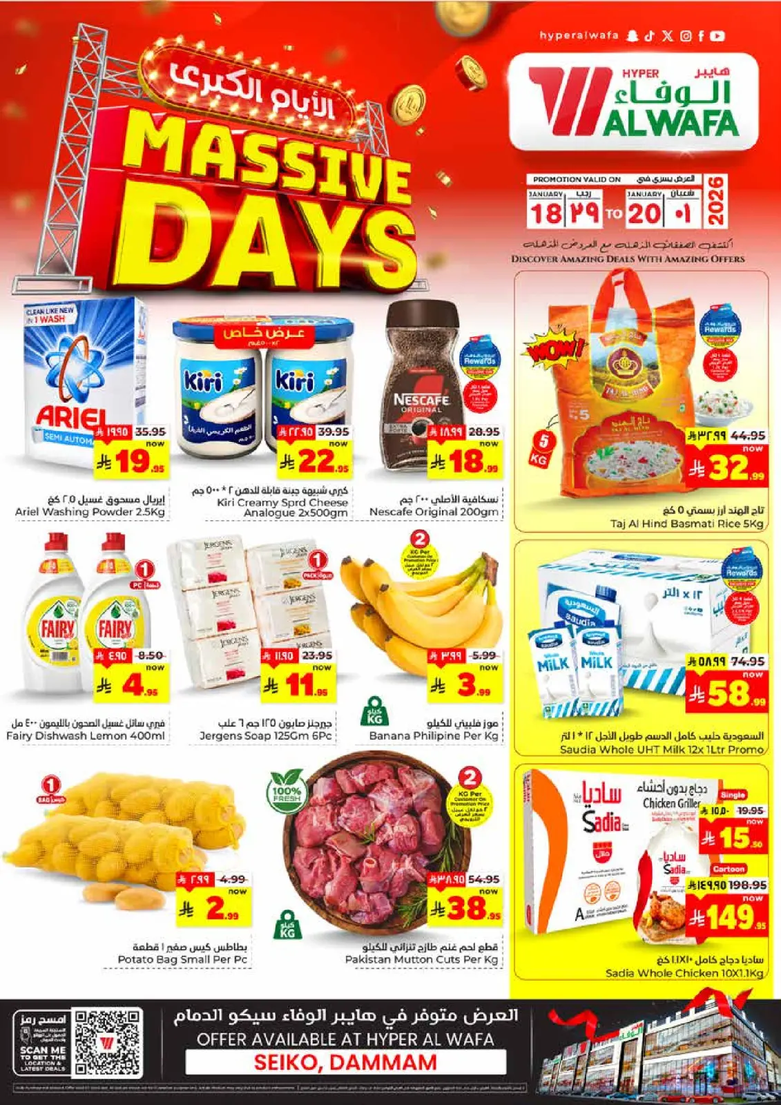 عروض الوفاء هايبر ماركت الدمام من 18 حتى 20 يناير 2026 3 أيام للتخفيضات الكبري