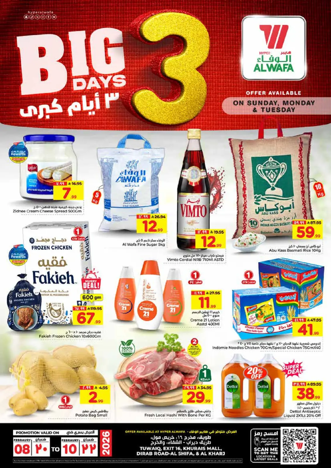 اكتشف أحدث عروض الوفاء هايبر ماركت في السعودية اليوم بفروع الرياض و الخرج وتصفح كاتالوج عروض أيام كبيرة واستفد من أفضل الأسعار حتى 10 فبراير 2026.