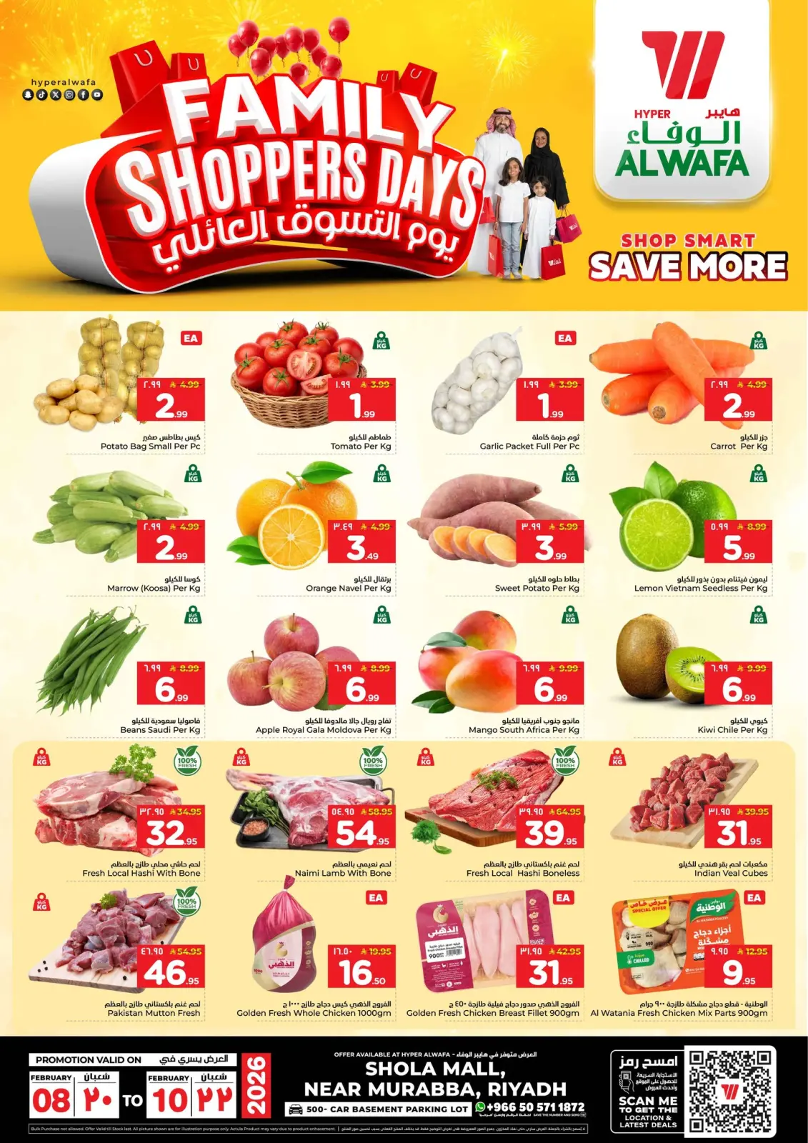 اكتشف أحدث عروض الوفاء هايبر ماركت في السعودية اليوم وتصفح كاتالوج عروض يوم التسوق العائلى واستفد من أفضل الأسعار حتى 10 فبراير 2026.