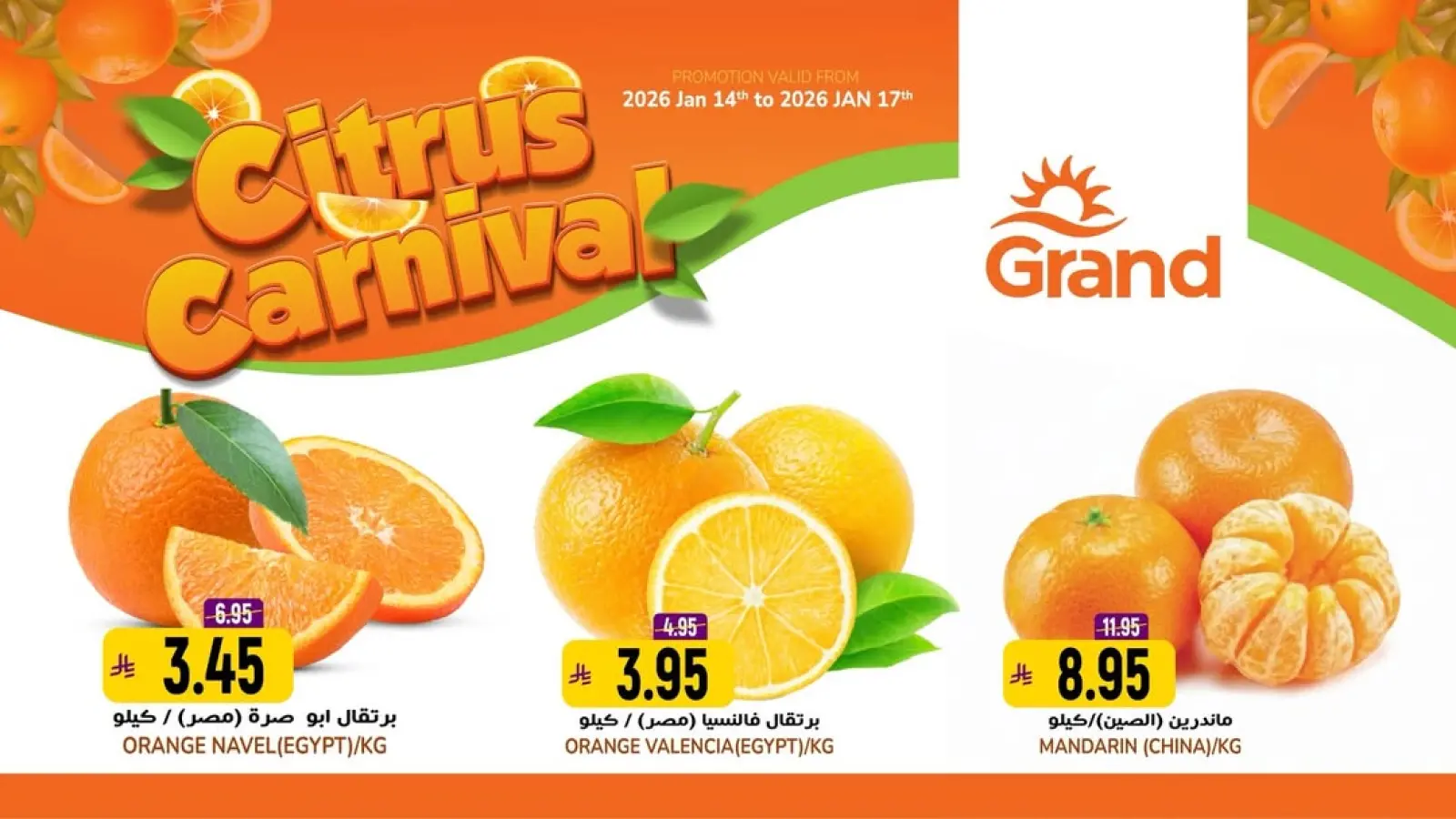تنويه: صور وأسعار عروض مهرجان الحمضيات في جراند هايبر ماركت السعودية المعروضة في هذا الكاتالوج لأغراض توضيحية فقط، وتخضع للتوفر في الفروع خلال فترة العرض.