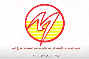 مكة هايبر ماركت السعودية بفروع الملز تعلن عن تخفيضات جديدة بعنوان « عروض انخفاض الأسعار » المتوفرة حتي يوم 13 ديسمبر 2025, عروض جديدة وأسعار فقط في السعودية.