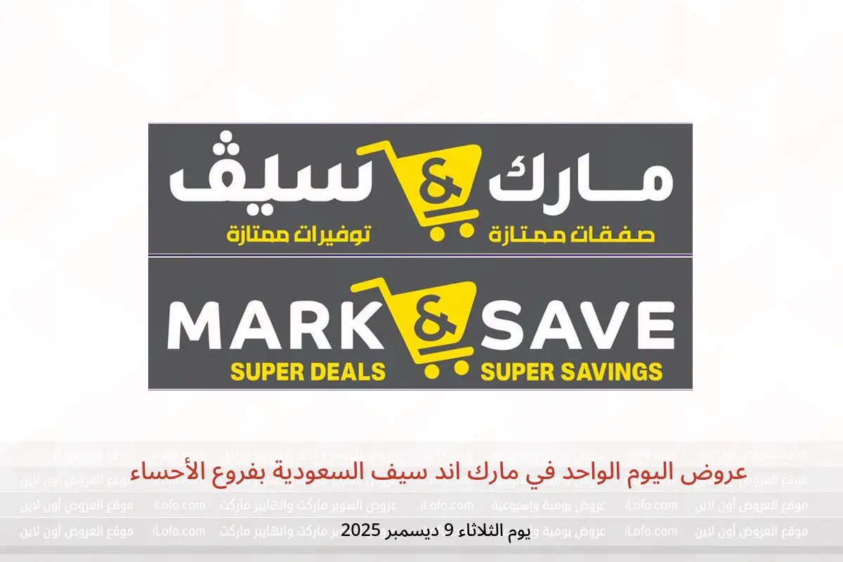 عروض اليوم الواحد في مارك اند سيف الأحساء يوم الثلاثاء 9 ديسمبر
