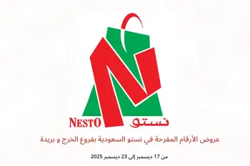 صور وأسعار عروض الأرقام المفرحة في نستو السعودية بفروع الخرج و بريدة المعروضة هنا لأغراض توضيحية فقط ومتاحة من الأربعاء, 17 ديسمبر 2025 حتي الثلاثاء, 23 ديسمبر 2025 ،من i L O F O . C O M.