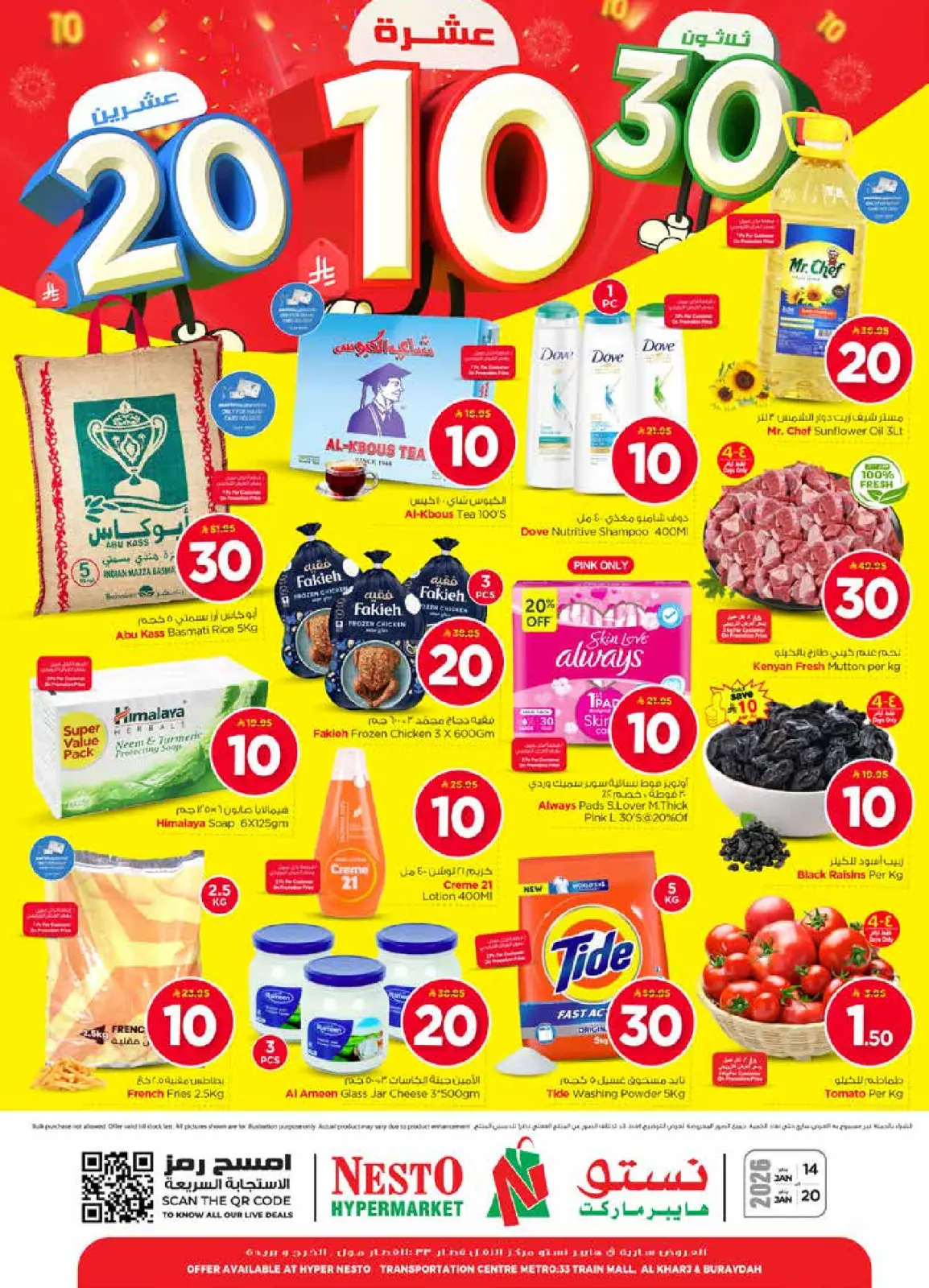 - عروض نستو شقراء و المجمعة من 14 حتى 20 يناير 2026 عروض الأرقام المفرحة 10، 20، 30