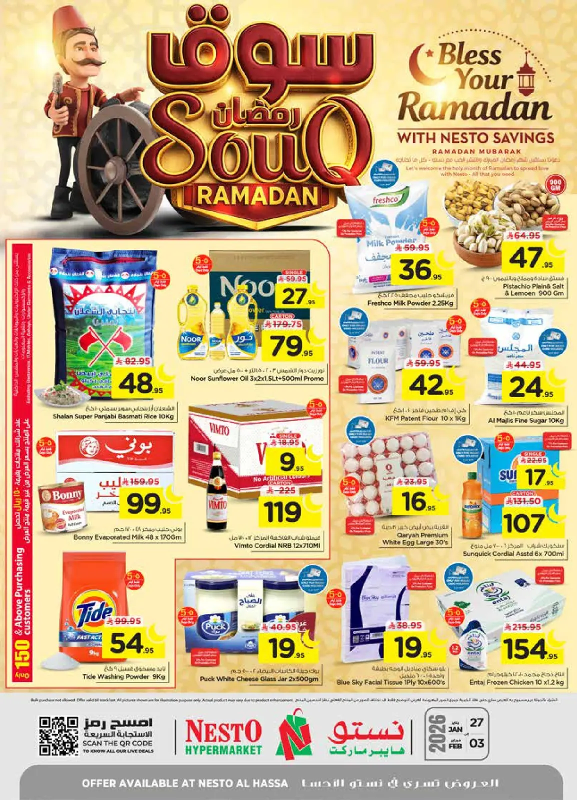اكتشف أحدث عروض نستو في السعودية اليوم بفروع الأحساء وتصفح كاتالوج عروض سوق رمضان واستفد من أفضل الأسعار حتى 3 فبراير 2026.
