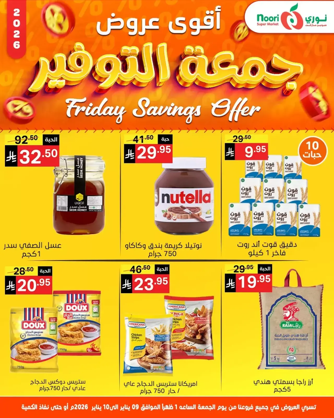 اكتشف أحدث عروض نورى سوبر ماركت في السعودية اليوم وتصفح كاتالوج عروض جمعة التوفير واستفد من أفضل الأسعار حتى 10 يناير 2026.