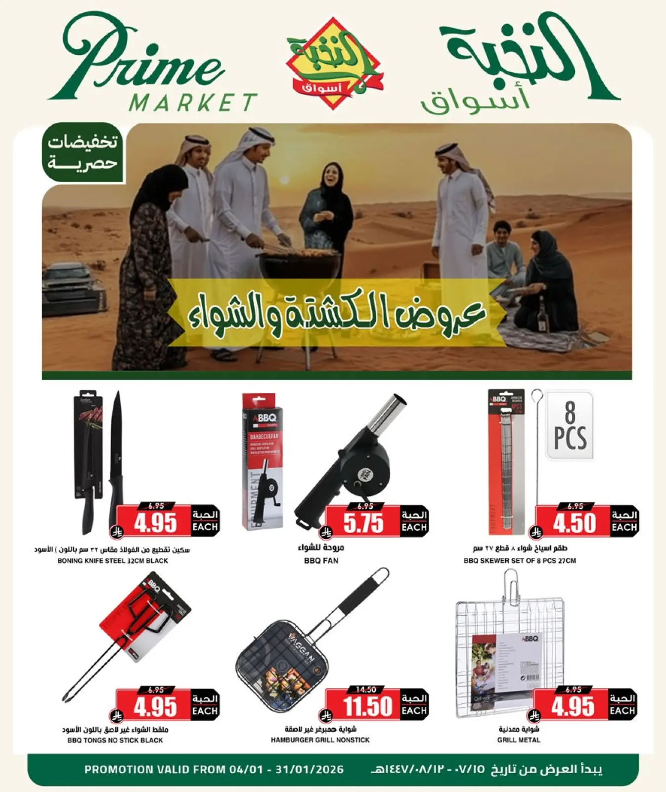 تنويه: صور وأسعار عروض الكشتة والشواء في أسواق النخبة السعودية المعروضة في هذا الكاتالوج لأغراض توضيحية فقط، وتخضع للتوفر في الفروع خلال فترة العرض.