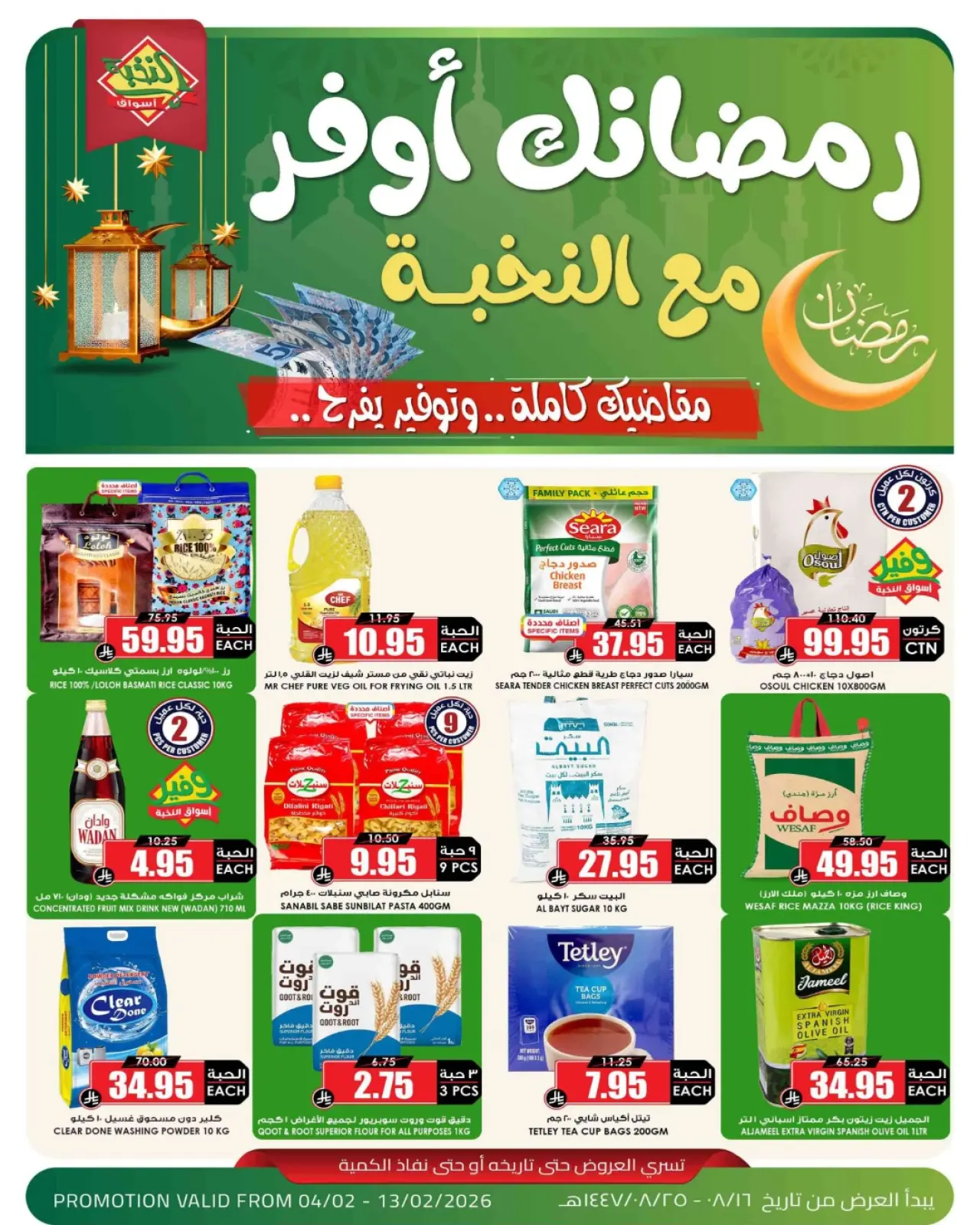 اكتشف أحدث عروض أسواق النخبة في السعودية اليوم وتصفح كاتالوج عروض رمضانك عندنا أوفر واستفد من أفضل الأسعار حتى 13 فبراير 2026.