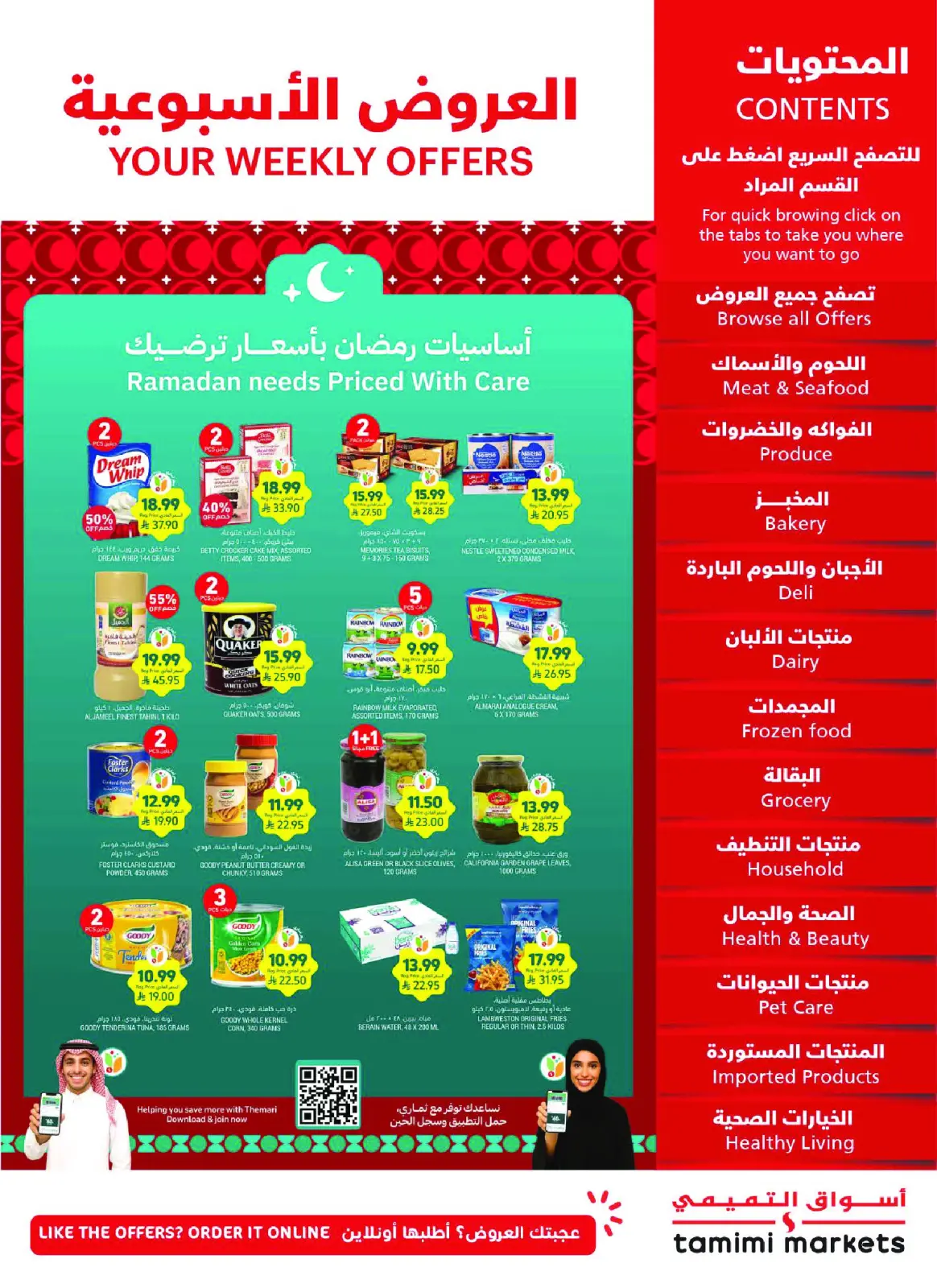 تنويه: صور وأسعار عروض أساسيات رمضان في أسواق التميمى السعودية المعروضة في هذا الكاتالوج لأغراض توضيحية فقط، وتخضع للتوفر في الفروع خلال فترة العرض.