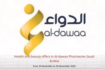 Al-dawaa Pharmacies Saudi Arabia announces new discounts titled « Health and beauty offers » available until 30 November 2025, new offers and prices only in Saudi Arabia.