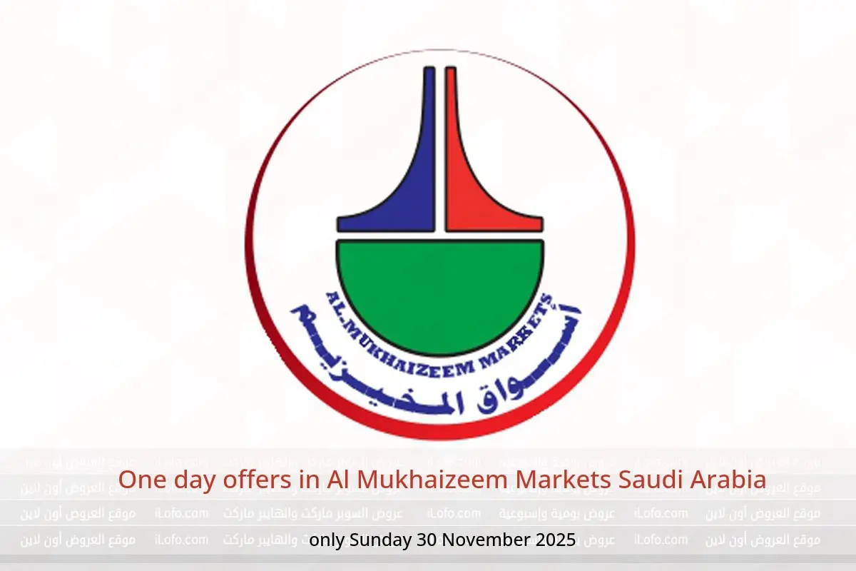 Al Mukhaizeem Markets Saudi Arabia announces new discounts titled « One day offers » available until 30 November 2025, new offers and prices only in Saudi Arabia.