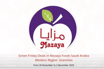 Mazaya Foods Saudi Arabia in Western Region branches announces new discounts titled « Green Friday Deals » available until 2 December 2025, new offers and prices only in Saudi Arabia.