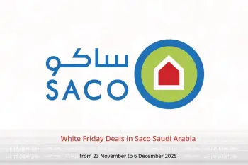 Saco Saudi Arabia announces new discounts titled « White Friday Deals » available until 6 December 2025, new offers and prices only in Saudi Arabia.