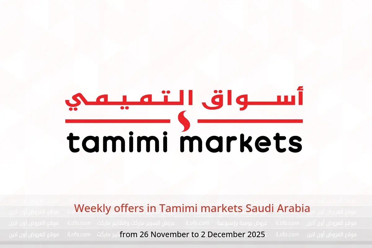 Pictures and prices for Weekly offers in Tamimi markets Saudi Arabia and All images shown here are for illustrative purposes only and what is shown here may differ from the actual products And available from Wednesday, 26 November 2025 to Tuesday, 2 December 2025.from i L O F O . C O M.