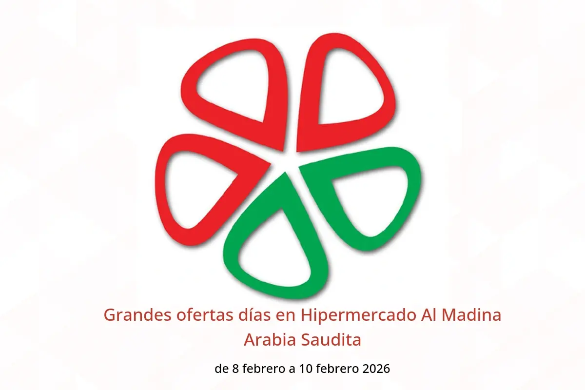 Descubre las últimas ofertas de Hipermercado Al Madina en Arabia Saudita hoy . Consulta el catálogo Grandes ofertas días, disponible hasta 10 febrero 2026.