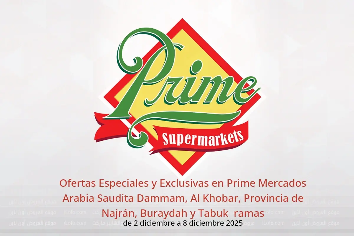 Prime Mercados Arabia Saudita en sucursales Tabuk, Provincia de Najrán, Buraydah, Al Khobar y Dammam anuncia nuevos descuentos titulados « Ofertas Especiales y Exclusivas » disponibles hasta el día 8 diciembre 2025, nuevas ofertas y precios sólo en Arabia Saudita.