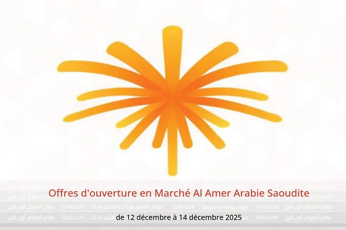 Marché Al Amer Arabie Saoudite annonce de nouvelles réductions intitulées « Offres d'ouverture » disponibles jusqu'au 14 décembre 2025, de nouvelles offres et prix uniquement en Arabie Saoudite.