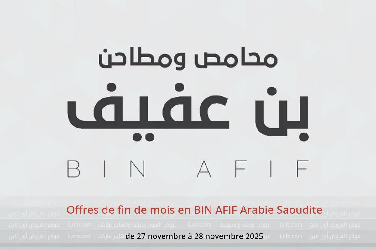 BIN AFIF Arabie Saoudite annonce de nouvelles réductions intitulées « Offres de fin de mois » disponibles jusqu'au 28 novembre 2025, de nouvelles offres et prix uniquement en Arabie Saoudite.
