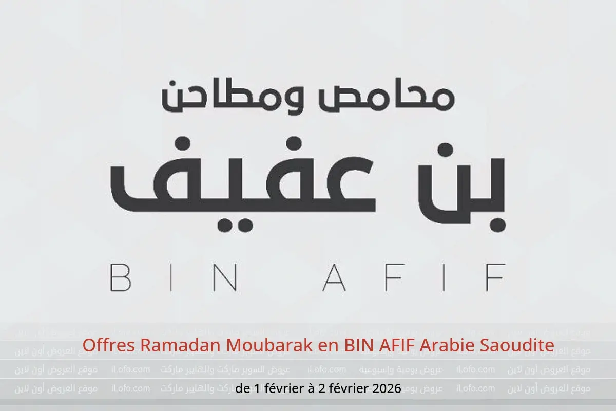 Découvrez les dernières offres BIN AFIF en Arabie Saoudite aujourd’hui . Consultez le catalogue Offres Ramadan Moubarak, disponible jusqu’au 2 février 2026.