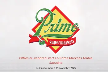 Prime Marchés Arabie Saoudite annonce de nouvelles réductions intitulées « Offres du vendredi vert » disponibles jusqu'au 29 novembre 2025, de nouvelles offres et prix uniquement en Arabie Saoudite.