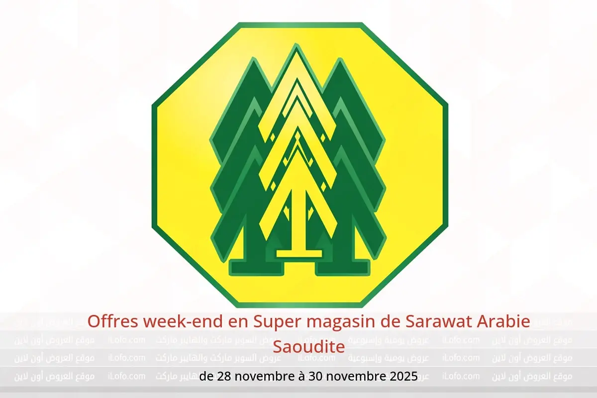 Super magasin de Sarawat Arabie Saoudite annonce de nouvelles réductions intitulées « Offres week-end » disponibles jusqu'au 30 novembre 2025, de nouvelles offres et prix uniquement en Arabie Saoudite.
