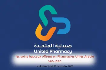 Pharmacies Unies Arabie Saoudite annonce de nouvelles réductions intitulées « les soins buccaux offrent » disponibles jusqu'au 11 décembre 2025, de nouvelles offres et prix uniquement en Arabie Saoudite.