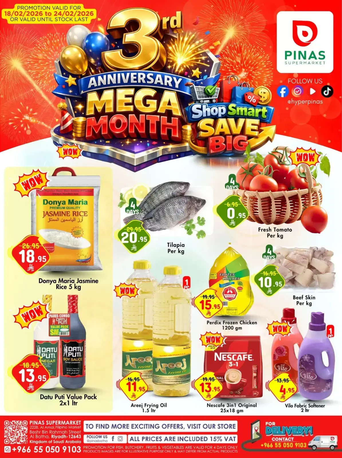 اكتشف أحدث عروض بيناس سوبر ماركت في السعودية اليوم بفروع الرياض و البطحاء وتصفح كاتالوج عروض الذكرى السنوية واستفد من أفضل الأسعار حتى 24 فبراير 2026.